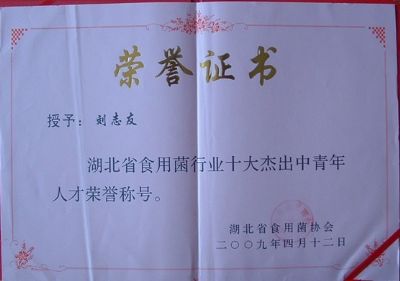 湖北食用菌協(xié)會(huì)授予食用菌十大杰出中青年人才榮譽(yù)稱號(hào)