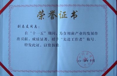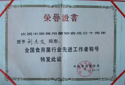 為食用菌產(chǎn)業(yè)的發(fā)展做出貢獻(xiàn)授予先進(jìn)工作者稱號(hào)
